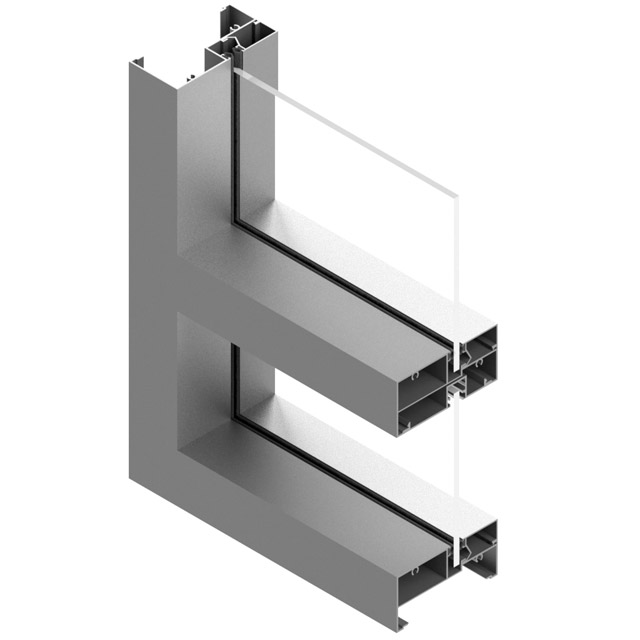 Our curtain wall is composed of in-fills of glass and sturdy aluminum profiles that can de hidden behind the system or visible from outside the building depending on the customer request. The framing is attached to the building structure and does not carry the floor or roof loads of the building. The wind and gravity loads of the curtain wall vary and depend on the height and location of the building. Curtain wall systems range from standard catalog systems to specialized custom walls.